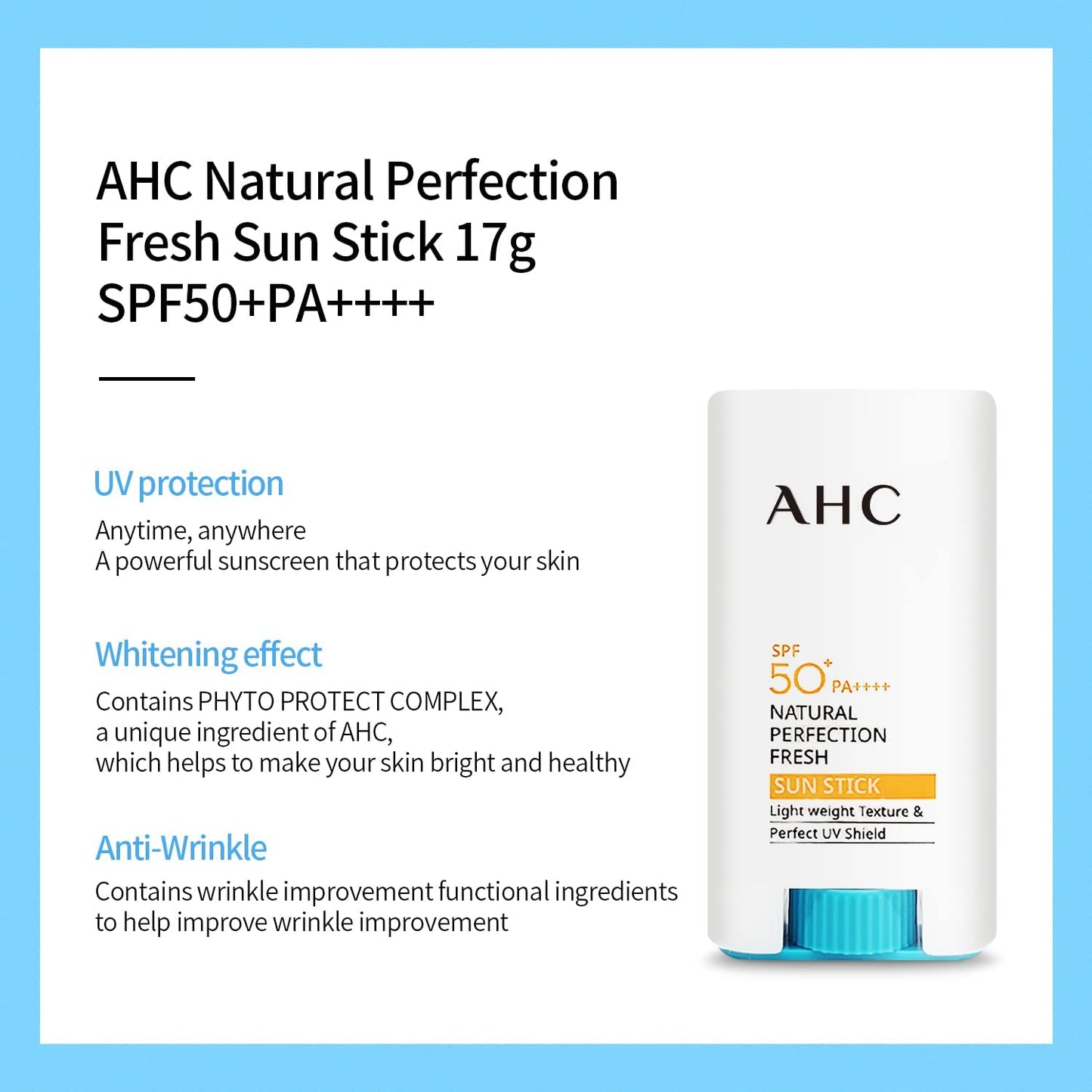 Barra protectora solar AHC Natural Perfection Fresh SPF50 PA++++ 17 g/0,59 oz.